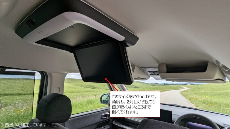 これは「静寂を買うための投資」です…笑。これがあるだけで、長距離のドライブでも子どもたちが飽きずに座り続けてくれます。「もう着く?」「もう降りたい!」の無限ループが止まりました。大画面なので、3列目のシートからでも問題なく観ることができます。